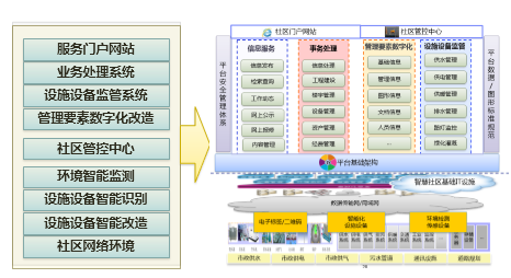 社區(qū)解決方案,是一個包括環(huán)境層、數(shù)據(jù)層、支撐平臺層和應(yīng)用層的綜合管理系統(tǒng),通過綜合運用信息網(wǎng)絡(luò)、自動控制和智能識別等技術(shù),實現(xiàn)社區(qū)要素的數(shù)字化、設(shè)施設(shè)備的智能化、信息資源的網(wǎng)絡(luò)化和日常管理的可視化。