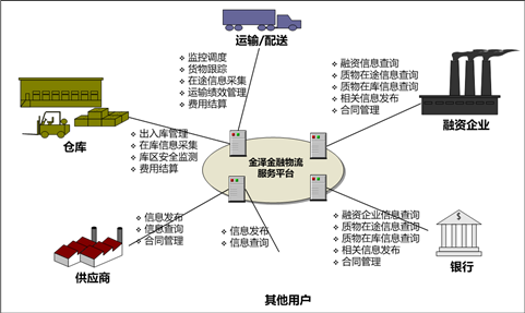金澤物流集團為了改善中小企業(yè)在貸款融資過程中申請周期長、審批流程不透明、監(jiān)管信息通知不及時等問題,特建設(shè)金融物流服務(wù)平臺。 平臺結(jié)合金融機構(gòu)、商貿(mào)制造企業(yè)、監(jiān)管企業(yè)、保險評估機構(gòu)等多方企業(yè),打造出一個集“融資服務(wù)、物流服務(wù)、監(jiān)管服務(wù)、信息服務(wù)”為一體的一站式綜合性服務(wù)平臺。 處于供應(yīng)鏈中的商貿(mào)制造企業(yè),在平臺中以原材料或產(chǎn)成品做為質(zhì)物,通過第三方物流公司的監(jiān)管,將有形的產(chǎn)品或物料質(zhì)押給金融機構(gòu)以獲取融資。 金融機構(gòu)在線下審核企業(yè)融資資質(zhì)后,通過平臺在線審批融資申請、實時查看押品庫存、動態(tài)調(diào)整押品價格、短信獲知監(jiān)管信息。 監(jiān)管企業(yè)通過平臺管理押品庫存明細,查看押品倉庫實時監(jiān)控,跟蹤押品價格走勢。 金融物流服務(wù)平臺創(chuàng)造了一個跨行業(yè)、相互交叉發(fā)展的新業(yè)務(wù)空間,解決了中小經(jīng)銷商的周轉(zhuǎn)資金問題;提高了金融機構(gòu)資金利用率;拓展了物流企業(yè)的新市場。