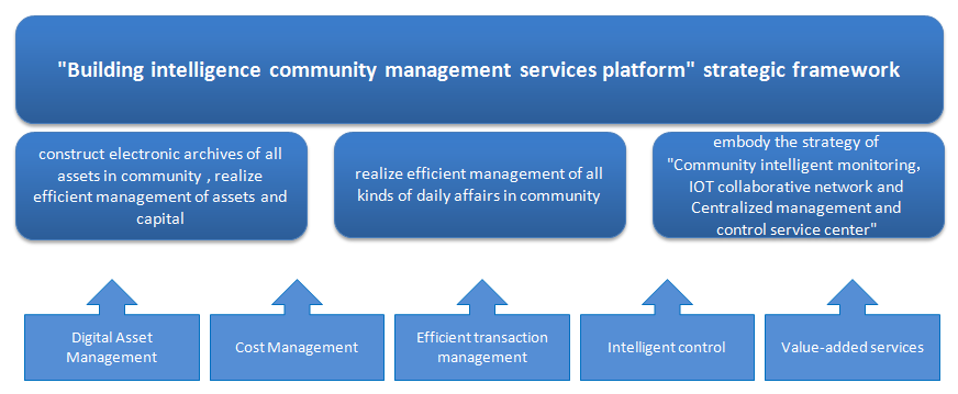 Intelligent community is a integrated management system which incorporates environment layer, data layer, supporting platform layer and application layer. Through integrated use of information networks, automatic control and intelligent recognition technology to realize digitalized community, intelligentized device, networked information resources, visualized daily management.