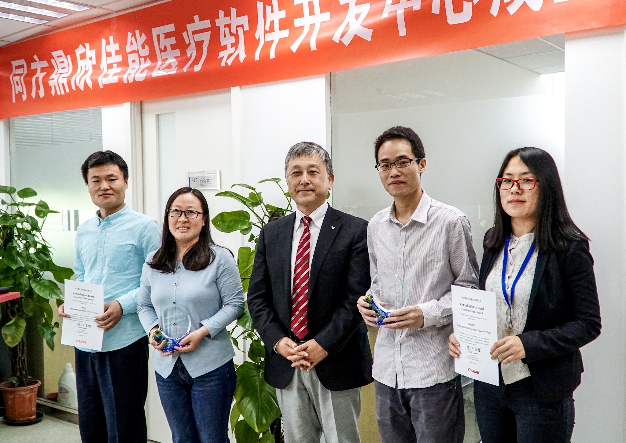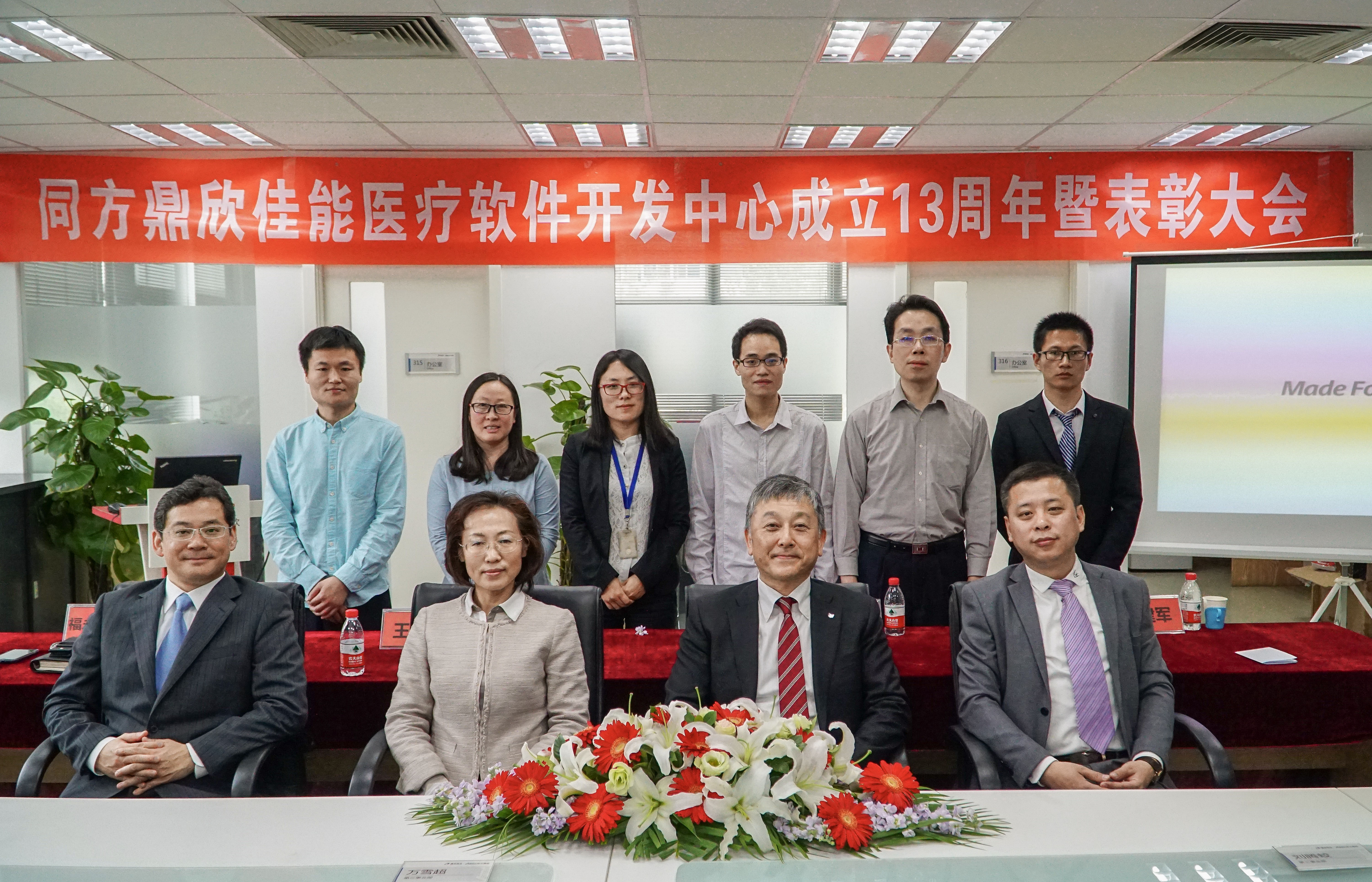 4月24日,同方鼎欣佳能醫(yī)療軟件開發(fā)中心(以下簡稱:SDC)成立13周年暨表彰大會在公司北京總部成功舉辦。在表彰大會前同方鼎欣總裁李建軍先生與副總裁江威先生、醫(yī)療事業(yè)部副總經(jīng)理柳秀君女士、與佳能醫(yī)療系統(tǒng)株式會社(以下簡稱:佳能醫(yī)療)的嘉賓高橋徹先生、福永智久先生、佳能醫(yī)療(中國)王紅女士一同參加了座談會并進(jìn)行了深入交流。