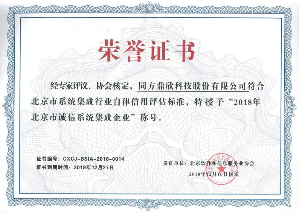 近日,北京市軟件和信息服務(wù)業(yè)協(xié)會(huì)公示了2018年第三批北京市誠(chéng)信系統(tǒng)集成企業(yè)名單,同方鼎欣再次被授予2018年度北京市誠(chéng)信系統(tǒng)集成企業(yè)的稱號(hào),此次評(píng)選活動(dòng)是北京軟件和信息服務(wù)業(yè)協(xié)會(huì)制定新的《北京市系統(tǒng)集成企業(yè)行業(yè)自律信用活動(dòng)管理辦法》以來第二年進(jìn)行的集成企業(yè)的信用評(píng)價(jià)工作。旨在加快推進(jìn)北京市系統(tǒng)集成行業(yè)信用體系建設(shè),提高系統(tǒng)集成企業(yè)誠(chéng)信意識(shí),加強(qiáng)行業(yè)自律,規(guī)范市場(chǎng)秩序,在市社團(tuán)辦的指導(dǎo)下。經(jīng)過專家和第三方機(jī)構(gòu)的嚴(yán)格評(píng)選和篩查,同方鼎欣最終再次通過評(píng)選。