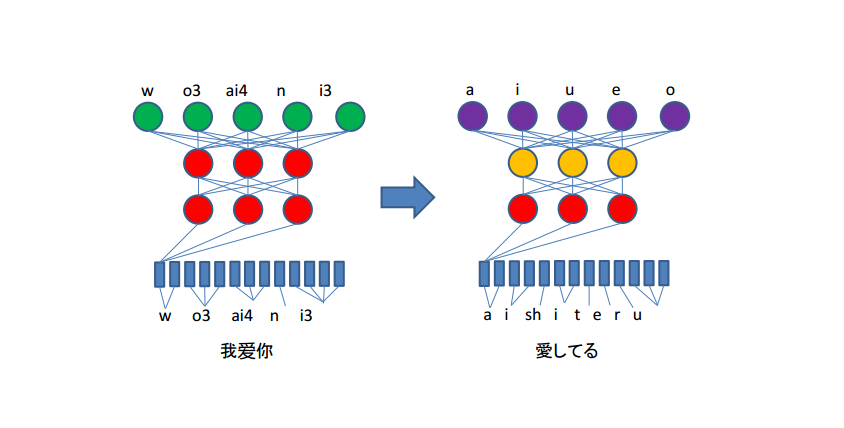 從而實(shí)現(xiàn)可基于相對(duì)較少的日語(yǔ)數(shù)據(jù)資源可以有效地訓(xùn)練日語(yǔ)語(yǔ)音識(shí)別系統(tǒng)的神經(jīng)網(wǎng)絡(luò)模型,并繼承漢語(yǔ)模型對(duì)噪聲和口音的魯棒性,提升系統(tǒng)實(shí)用性能。