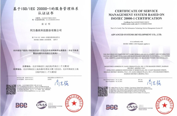 與此同時,同方鼎欣為構(gòu)筑高規(guī)格的質(zhì)量保證和信息安全體系,注重可持續(xù)發(fā)展和員工的職業(yè)健康與安全,此前已率先通過了軟件能力成熟度模型集成認(rèn)證(CMMI)5級、ISO9001:2015質(zhì)量管理認(rèn)證、ISO27001:2013信息安全管理認(rèn)證、ISO14001:2015環(huán)境管理體系認(rèn)證和ISO45001:2018職業(yè)健康安全管理體系認(rèn)證、信息系統(tǒng)建設(shè)和服務(wù)能力評估CS3級(系統(tǒng)集成貳級)評估等一系列資質(zhì)認(rèn)證。此次同方鼎欣順利通過IT服務(wù)管理體系復(fù)審認(rèn)證,標(biāo)志著同方鼎欣在IT服務(wù)領(lǐng)域始終保持著先進(jìn)水平,在品牌知名度和企業(yè)競爭力方面始終名列前茅!
