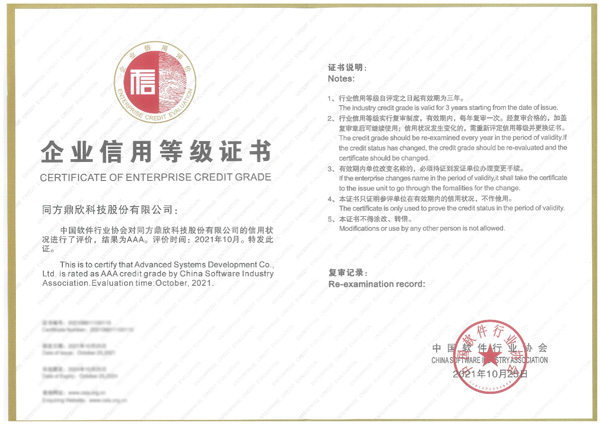 近日,經(jīng)中國(guó)軟件行業(yè)協(xié)會(huì)嚴(yán)格的審核評(píng)估,同方鼎欣順利通過(guò)了新一年度的AAA信用等級(jí)評(píng)定,再次獲得企業(yè)信用評(píng)價(jià)最高等級(jí)——“AAA級(jí)信用企業(yè)”認(rèn)證。這標(biāo)志著同方鼎欣在資本實(shí)力、經(jīng)營(yíng)能力、經(jīng)濟(jì)效益、服務(wù)能力、產(chǎn)品質(zhì)量、管理水平等信用相關(guān)的行為、狀況和能力再次得到了全面權(quán)威的認(rèn)可,也是對(duì)同方鼎欣整體綜合實(shí)力與競(jìng)爭(zhēng)力的全面展現(xiàn)!