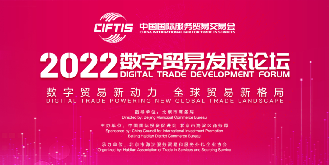 作為2022年服貿(mào)會(huì)的分論壇,“2022數(shù)字貿(mào)易發(fā)展論壇”是由中國(guó)國(guó)際投資促進(jìn)會(huì)、北京市海淀區(qū)商務(wù)局主辦,北京市海淀服務(wù)貿(mào)易和服務(wù)外包企業(yè)協(xié)會(huì)承辦。作為海淀區(qū)在服貿(mào)會(huì)的主要分論壇,也是推進(jìn)海淀區(qū)數(shù)字貿(mào)易港建設(shè)的重要國(guó)際交流平臺(tái),本論壇緊跟我國(guó)數(shù)字貿(mào)易發(fā)展趨勢(shì)以共同構(gòu)建數(shù)字經(jīng)濟(jì)生態(tài)圈為目標(biāo),圍繞“數(shù)字技術(shù)賦能綠色經(jīng)濟(jì)”的主題,與來(lái)自國(guó)內(nèi)外嘉賓及行業(yè)客戶進(jìn)行交流對(duì)接。