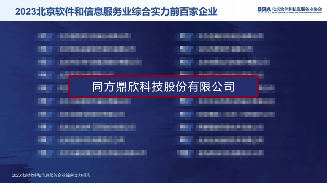 同方鼎欣連續(xù)七年蟬聯(lián)入選“北京軟件和信息服務(wù)業(yè)綜合實力前百家企業(yè)”