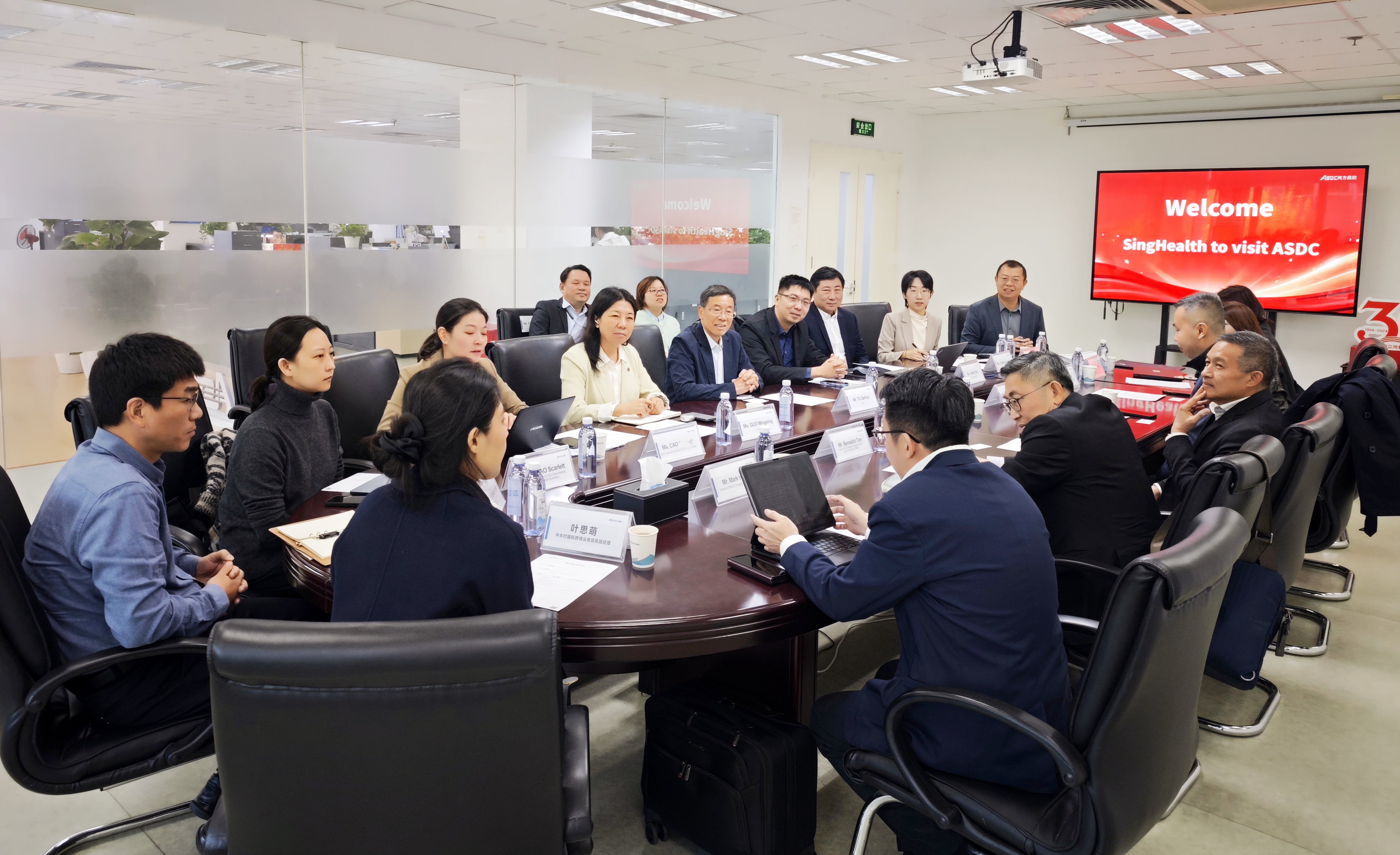 10月20日上午,在中關(guān)村國際的組織協(xié)同下,新加坡保健服務(wù)集團(tuán)(以下簡(jiǎn)稱“新保集團(tuán)”)副首席執(zhí)行官(數(shù)字醫(yī)療)郭永強(qiáng)、首席數(shù)字戰(zhàn)略官兼集團(tuán)首席數(shù)據(jù)官陳維柏、社區(qū)醫(yī)院總裁顏偉豪等核心高管團(tuán)隊(duì)一行蒞臨同方鼎欣科技股份有限公司北京總部;中關(guān)村國際副總經(jīng)理盧鵬、中關(guān)村北美總經(jīng)理助理曹雪玲等人全程陪同;鼎欣科技董事長(zhǎng)郭明星、CEO涂勤華、總經(jīng)理江威、副總裁雷超克等公司領(lǐng)導(dǎo)熱情接待了來賓。三方齊聚一堂,圍繞數(shù)字醫(yī)療領(lǐng)域的發(fā)展前景展開深入交流,共尋合作契機(jī)。