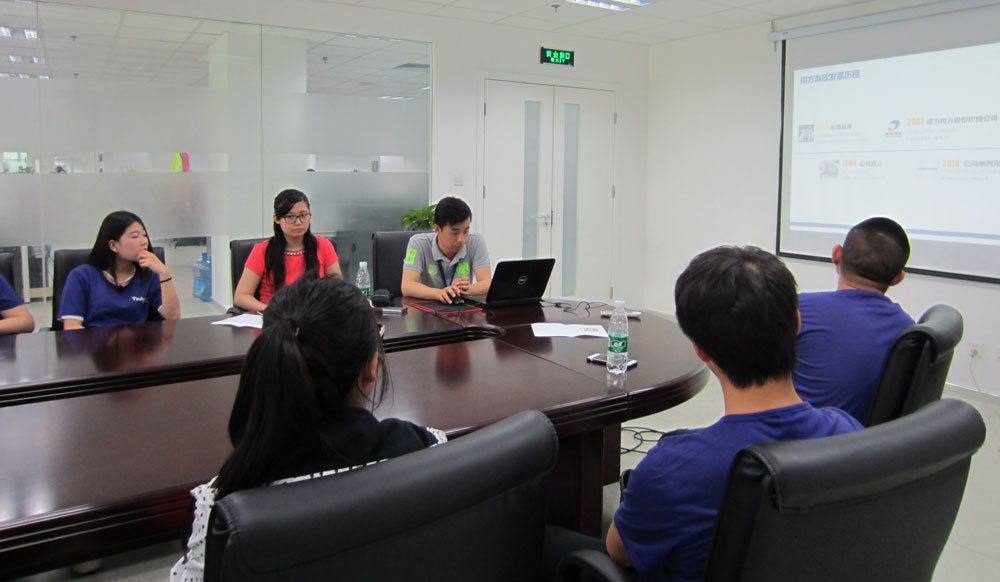 交流會(huì)上,同方鼎欣招聘中心經(jīng)理唱大龍為同學(xué)們介紹了公司的情況,包括公司發(fā)展歷程、企業(yè)文化、業(yè)務(wù)、合作伙伴及 獲得的資質(zhì)榮譽(yù)等內(nèi)容。當(dāng)日雖然天氣炎熱,但同學(xué)們依然聽得十分認(rèn)真。