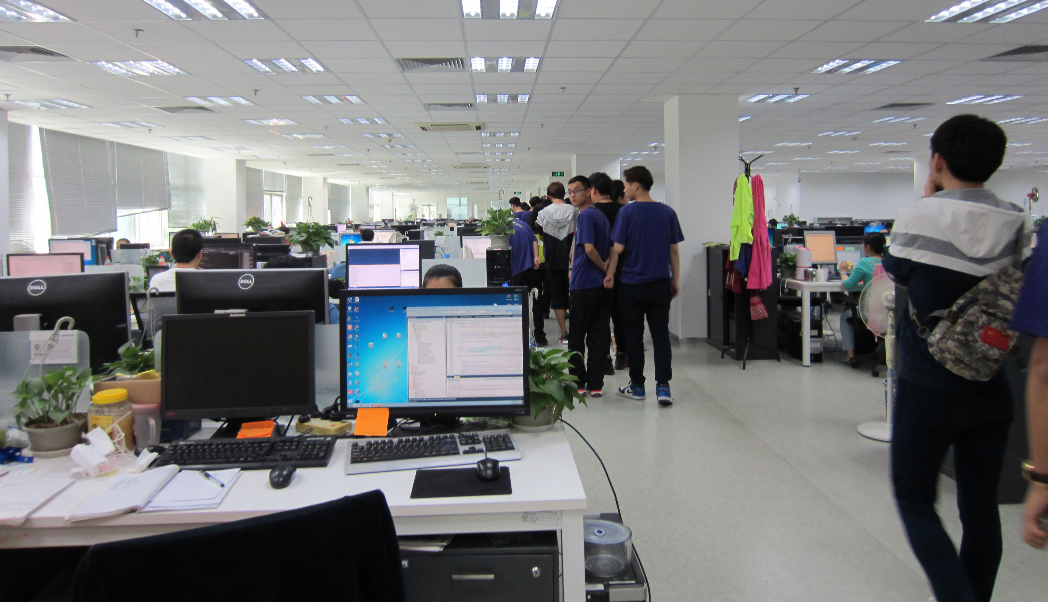 本次到公司參觀的同學(xué)大多以WEB前端開發(fā)及UI設(shè)計(jì)為專業(yè),為了讓同學(xué)們更好地了解自身所學(xué)專業(yè)在工作中的應(yīng)用 ,明確地找到學(xué)習(xí)中的方向,招聘中心主管張珊寧會(huì)上為大家講解了相關(guān)職業(yè)的應(yīng)屆生在求職中的注意事項(xiàng),并邀請(qǐng)同學(xué)們到WEB前端開發(fā)及UI設(shè)計(jì)工程師們的座位上,交流學(xué)習(xí)相關(guān)知識(shí)及工作內(nèi)容。同學(xué)們紛紛拋出自己各種困惑,我們的工程師用各種風(fēng)趣的比喻為同學(xué)們答疑解惑,現(xiàn)場(chǎng)氣氛相當(dāng)活躍。