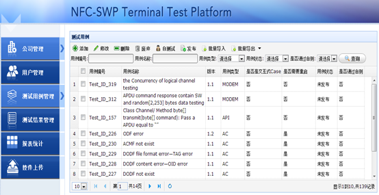NFC-SWP---SIMカード自動化テスト管理システムは攜帯電話メーカに自動化テスト機(jī)能を提供して、テストシーンの設(shè)定、テストケースの自動実施、テスト結(jié)果のリアルタイム検索をサポートします。システムのソースデータはテストケースとスクリプトの導(dǎo)入からです。
