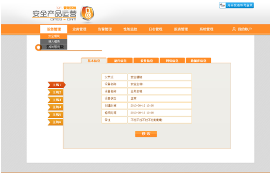 It includes modules that are Device configuration management, Performance management, Alarm management, Business management, logs, reporting and system setting.