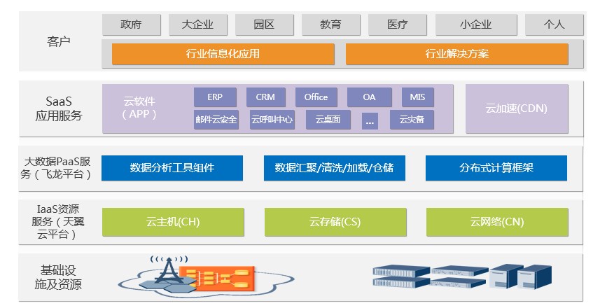 SaaS應(yīng)用服務(wù)、大數(shù)據(jù)PaaS服務(wù)、IaaS資源服務(wù)、基礎(chǔ)設(shè)施及資源。